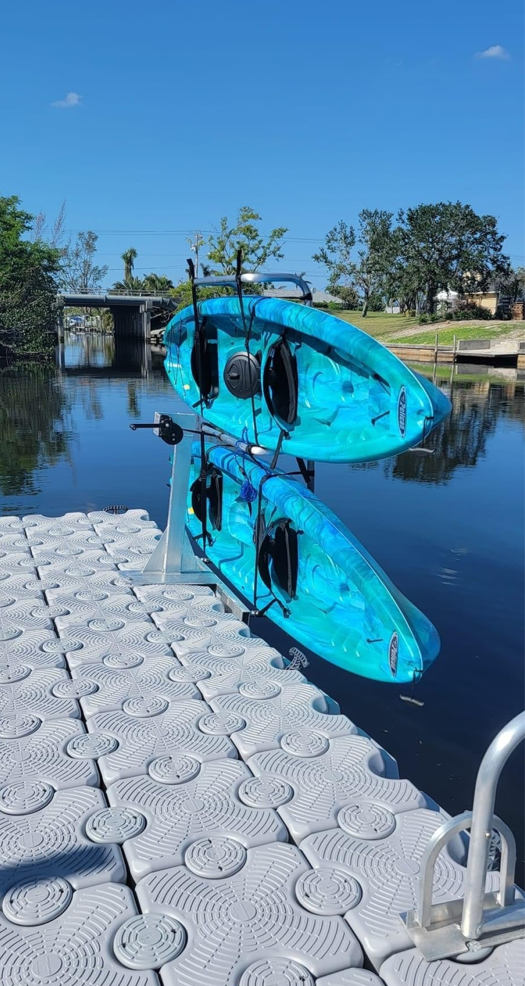 Finally, a better way to store your kayak(s), paddle board(s) or canoe(s) on your dock yet out of the way.