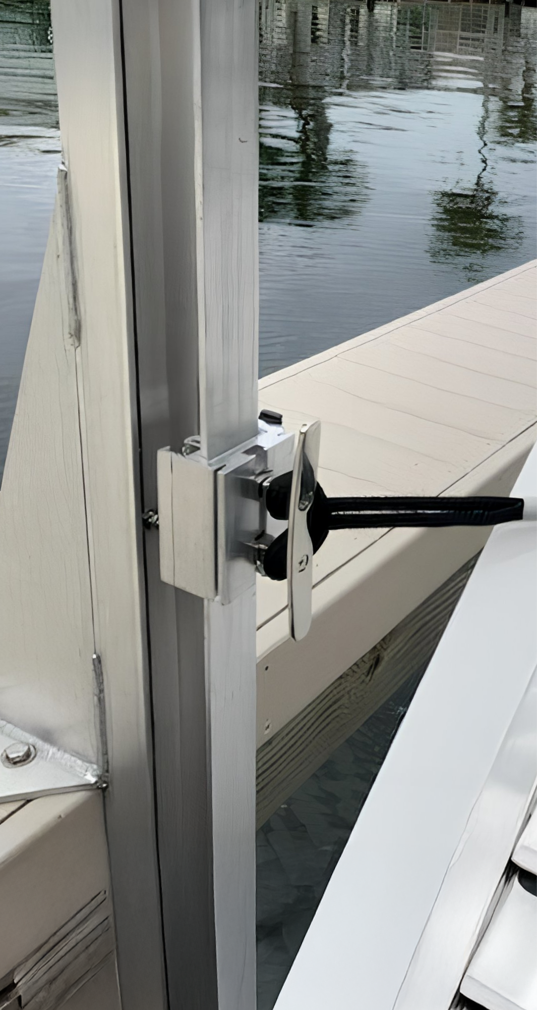 The patent-pending ROUGH RIDER™ mooring system allows for quick and easy tying up of your vessel. The easy-to-install system consists of a series of polymer "cleats" that ride up and down stainless rods which allows you to tie your boat up tight.